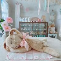 ピンクのリボンのはねうさぎのぬいぐるみ