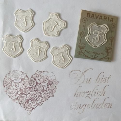 (size 2.5cm) 6枚入り スイスのビンテージのイニシャルモノグラムです。 閉鎖されてしまった工場で作られていたもののため、 今はもう作られていない貴重なイニシャルモチーフです。 古いもののため、シミなどある場合がございます。 ご了承下さい。。