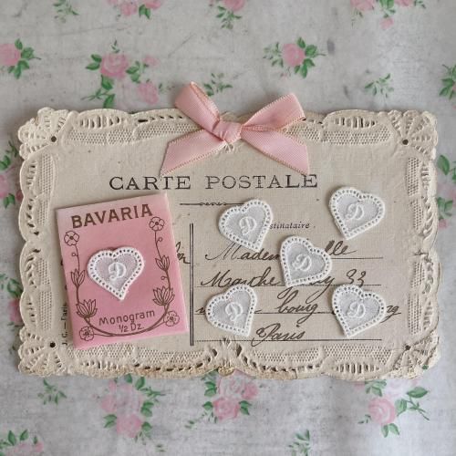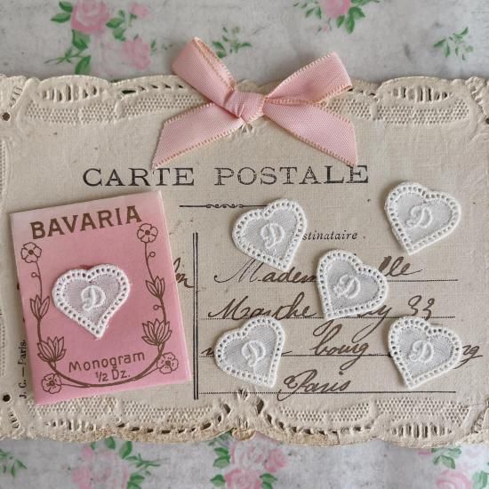 1890-1920年代に、スイスのSt.Gallenで作られたイニシャルモノグラムのモチーフ。こちらは、小さなかわいいサイズのベビーモノグラムです。当時は洋服や布の小物、テーブルクロスやベッドカバーなど、自分のものである事を証明するために使われていたそうです。 フランスやドイツへも、スイスから輸出されていました。(年月を経た古いもののため、シミなどがあるものもございます。ご了承下さい。。)
