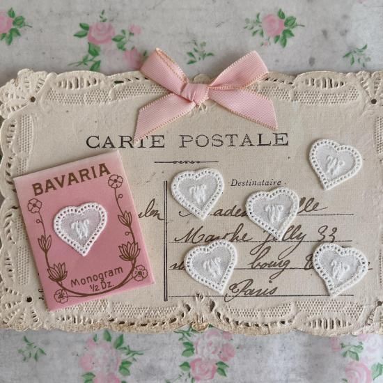 1890-1920年代に、スイスのSt.Gallenで作られたイニシャルモノグラムのモチーフ。こちらは、小さなかわいいサイズのベビーモノグラムです。当時は洋服や布の小物、テーブルクロスやベッドカバーなど、自分のものである事を証明するために使われていたそうです。 フランスやドイツへも、スイスから輸出されていました。(年月を経た古いもののため、シミなどがあるものもございます。ご了承下さい。。)