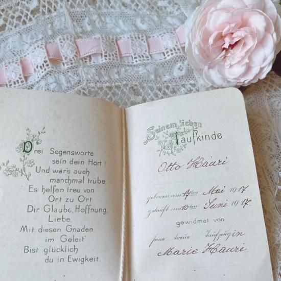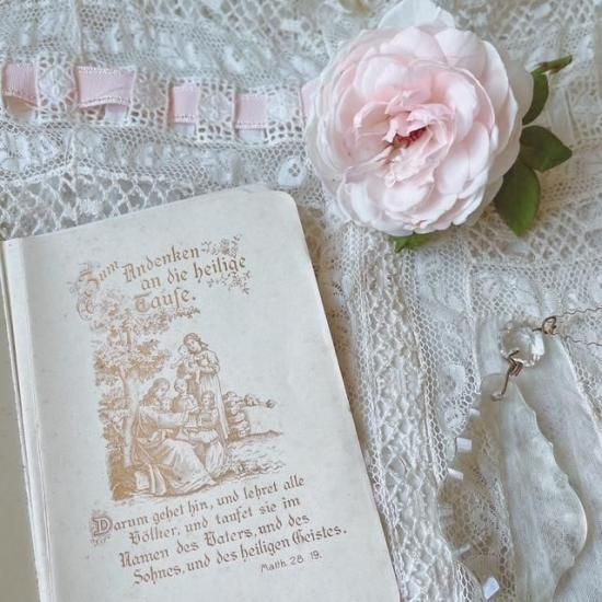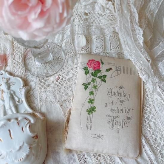 (size 12.5×8.5cm) 1917年代のバラの洗礼式のカードです。年月を経たものの為、シミや汚れなどあり、古びた風合いをしております。ご了承下さい。配送方法は、こねこ便になります。