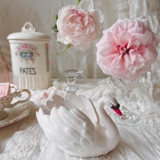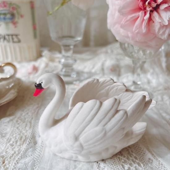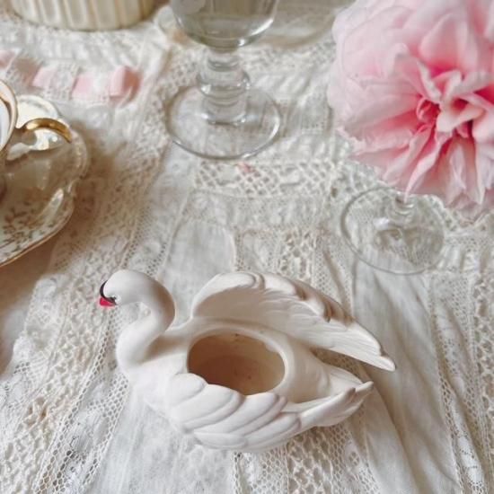(size 6.5×9×5cm) スイスの蚤の市で見つけてきましたが、ドイツ製の陶器のスワンです。年月を経たものの為、汚れがあったり、古びた風合いをしております。ご了承下さい。配送方法は、宅急便になります。